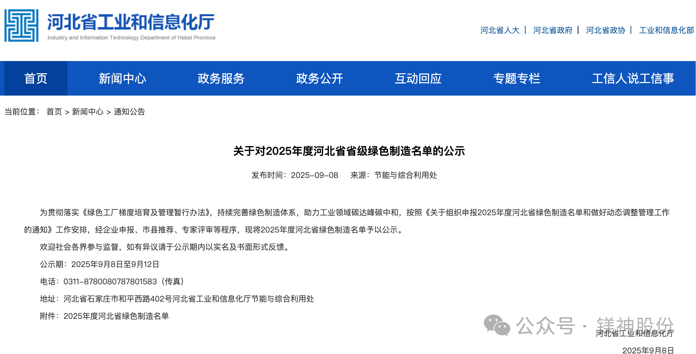 2025年9月8日,河北省工業和信息化廳正式公布了2025年河北省綠色制造名單。河北鎂神科技股份有限公司(以下簡稱“鎂神科技”)憑借在綠色制造、節能降耗、清潔生產等方面的突出表現,成功入選“2025年度河北省綠色制造名單”!這是公司積極踐行綠色發展理念、扎實推進綠色體系建設取得的重大成果,也是對鎂神科技綠色制造水平和可持續發展能力的認可!